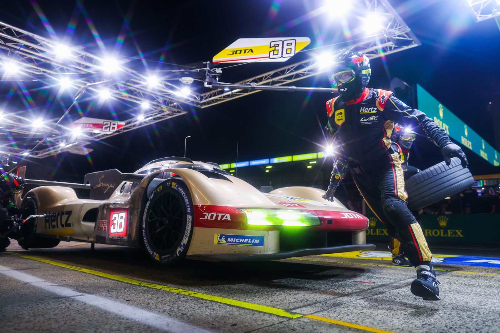 Dans cette impitoyable nuit mancelle, aucun constructeur engagé en Hypercar n’a été épargné. La Porsche 963 #5 de Porsche Penske Motorsport a été victime d’une fuite dans son circuit de refroidissement et a perdu 30 minutes. La Ferrari 499P #50 de Ferrari AF Corse a également rencontré un problème mécanique. L’équipe italienne a concédé 28 minutes. Chez Cadillac, la V-Series.R #3 pilotée par Sébastien Bourdais est partie en tête-à-queue au virage du Raccordement by Motul à la suite d’une incompréhension avec un retardataire. Enfin, la Peugeot #94 de Peugeot TotalEnergies a heurté la pile de pneus à la chicane Daytona alors qu’elle pointait en troisième position. Malgré de gros dégâts à l’avant droit, Gustavo Menezes est parvenu à regagner son stand, mais les réparations ont nécessité 23 minutes.