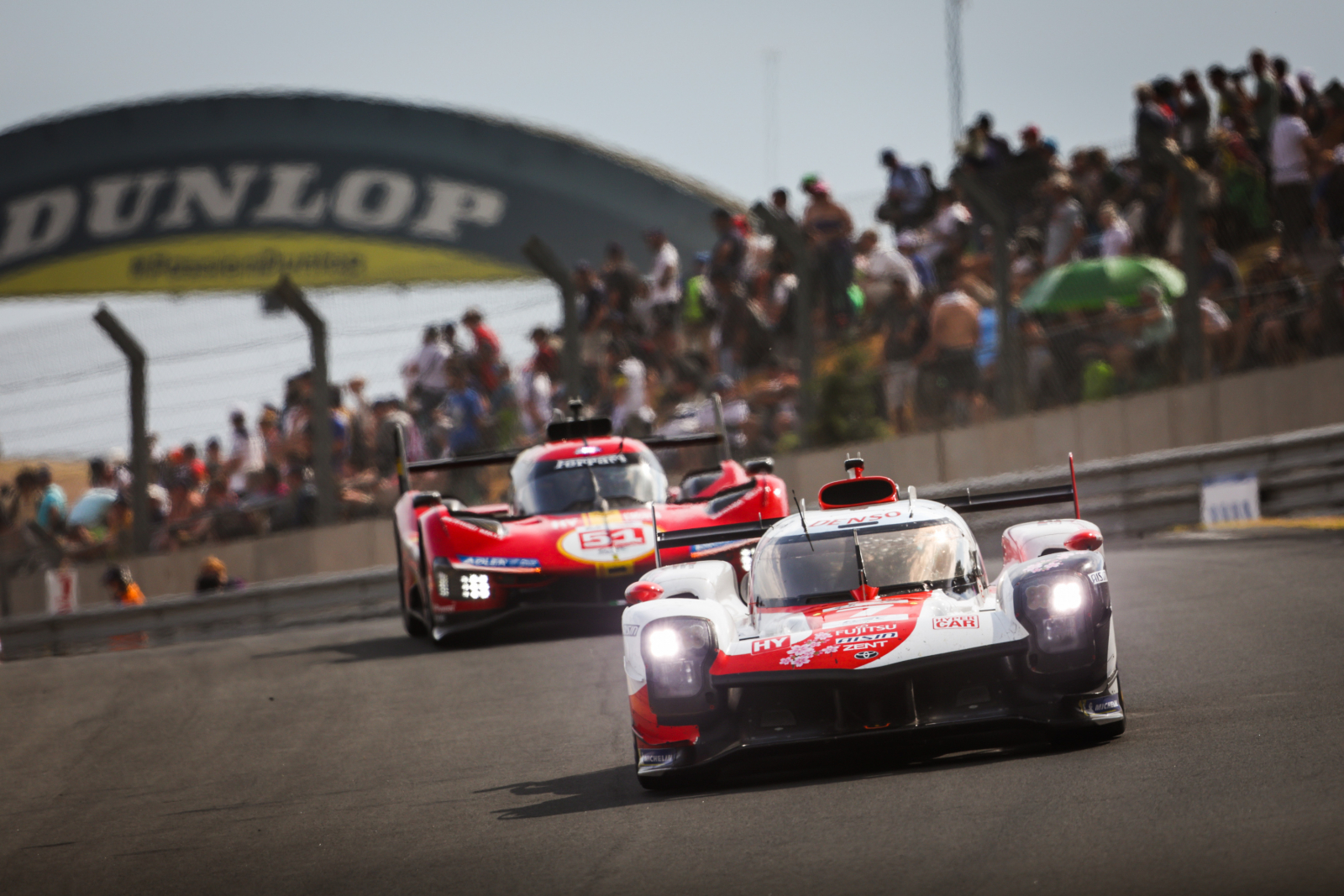 Une demi-heure plus tard, la course est relancée. Entre Mulsanne et Indianapolis, Mike Conway, sur la Toyota #7, s’affranchit lui aussi de la Ferrari 499P #50 : le constructeur japonais place ses deux voitures au sommet du classement. Cependant, l’équipe italienne réplique ; une fantastique bataille oppose les deux Ferrari et la Toyota #7 de Mike Conway.