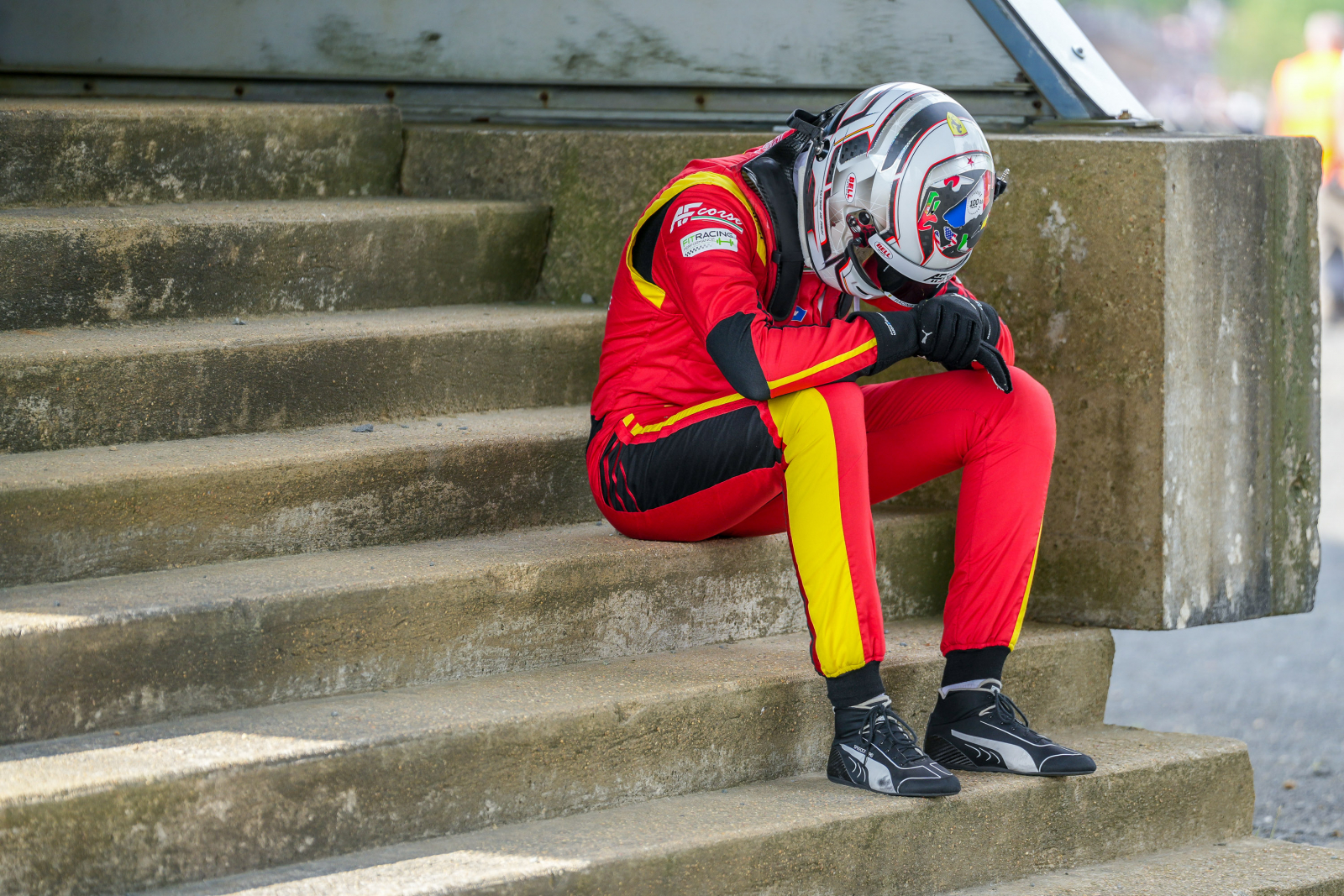 Rythmée par les ralentissements, la course n’offre pas de plus de répit aux spectateurs qu’aux coureurs. À l’entrée d’une slow zone, sous la passerelle Dunlop, la Ferrari 488 GTE Evo #21 est impliquée dans un accident avec la Cadillac V-Series.R #3 pilotée par Sébastien Bourdais. Le Français s’exprime sur cet incident :