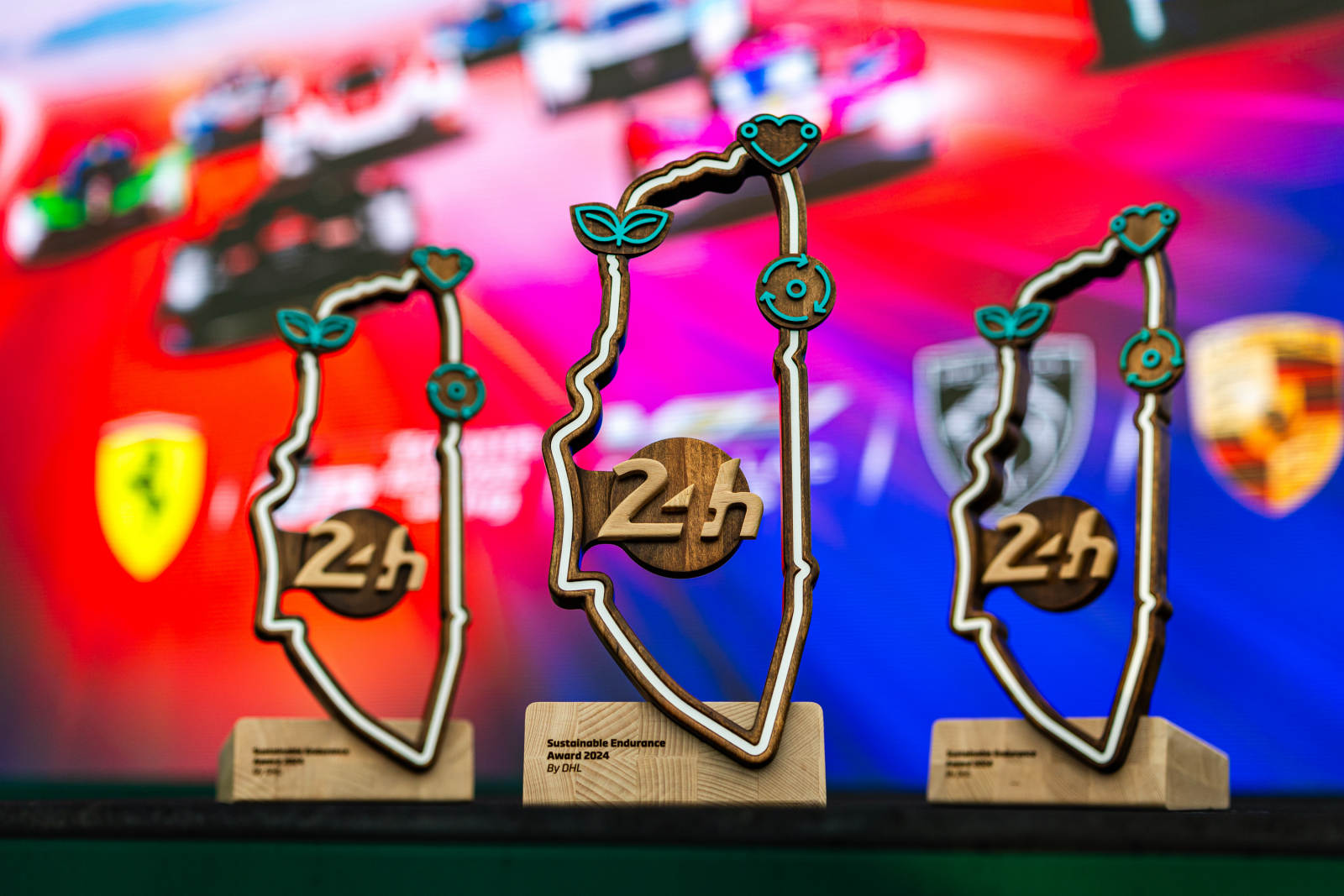 Lors de la conférence de presse des 24 Heures du Mans, le volet innovation positive du Sustainable Endurance Award by DHL 2024 a récompensé Ferrari AF Corse, Team WRT et Alpine Endurance Team. Ces équipes ont reçu un nouveau trophée réalisé en Bretagne par Ewan Bryce et à partir de bois français responsable.